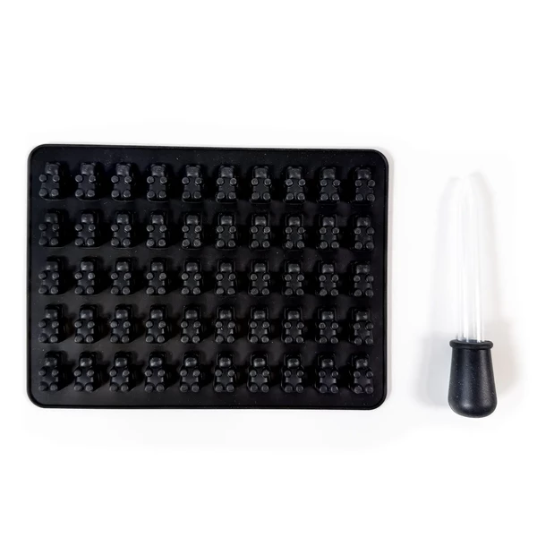 Dedykowana foremka/forma do żelków w kształcie misiów usuwa zgadywanie z domowej produkcji. Równe komory pomagają uzyskać powtarzalny rozmiar, a elastyczny silikon pozwala łatwo wyjąć gotowe misie żelki bez rozrywania detali. Dołączona pipeta sprawia, że napełnianie jest szybkie i schludne — niezależnie od tego, czy robisz żelki konopne, czy inne żelkowe słodycze. Dla osób szukających hasła "gummy bear mold" to po prostu foremka silikonowa na żelki misie.