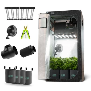 Przy wymiarach 90 × 90 × 200 cm namiot uprawowy oferuje wygodną przestrzeń roboczą i dużo miejsca w pionie, dzięki czemu łatwiej zarządzać całym zestawem do uprawy w namiocie. Połączenie dopasowanej lampy LED do uprawy, mocnego przepływu powietrza i praktycznych punktów dostępu sprawia, że ten zestaw do uprawy w namiocie to prosty wybór dla growerów, którzy chcą niezawodnego sprzętu w jednym pudełku.
